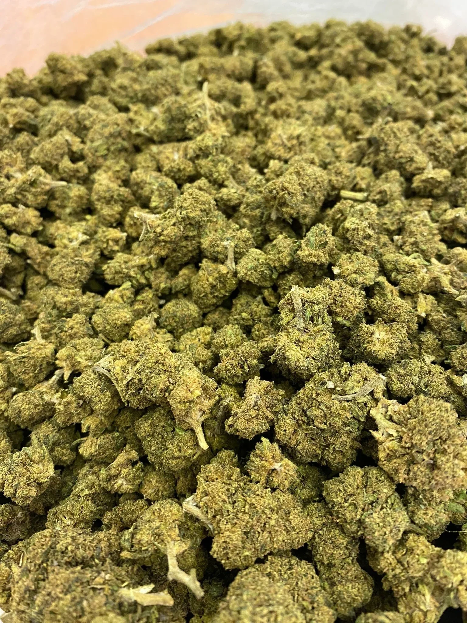 Um fenótipo híbrido 50/50. O fenótipo deste lote cultivado ao sol expressa cabeços densamente articulados, cálice roxo e verde e grandes quantidades de tricomas maduros e pegajosos.