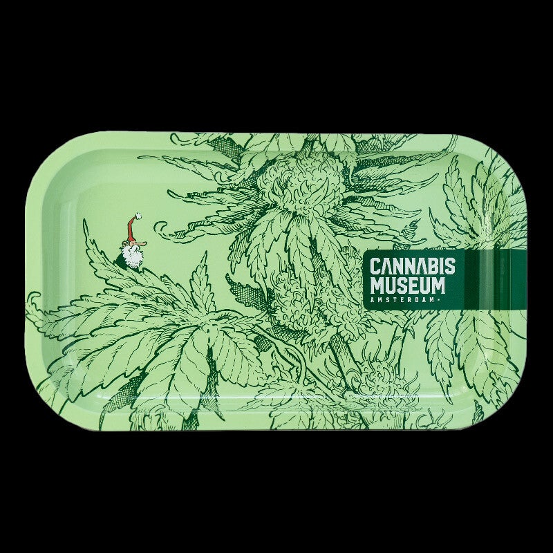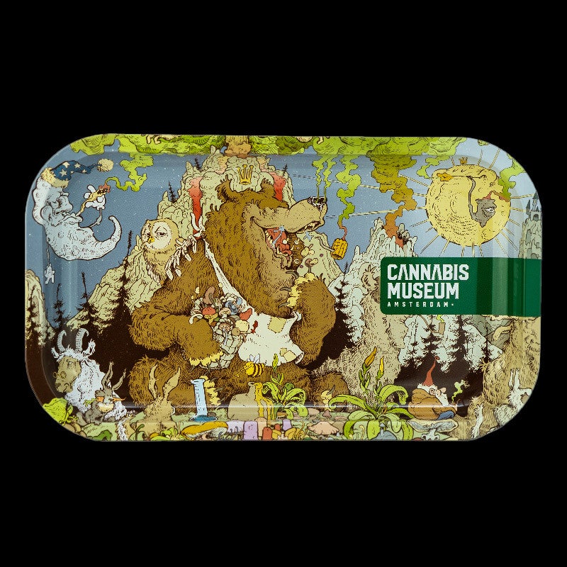 Eleva a experiência de enrolar com estes tabuleiros de metal exclusivos, criados pelo famoso artista Mosey Giant para o Cannabis Museum Amsterdam.
